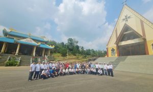 Trên đường đi, sau khi dùng cơm trưa tại Bảo Lộc, Đoàn đến thăm nhà thờ Kala – Trung tâm Truyền giáo của GP Đà Lạt – thuộc xã Bảo Thuận, huyện Di Linh, tỉnh Lâm Đồng. Giáo xứ Kala không chỉ là Trung tâm Đức tin của người dân tộc thiểu số tại khu vực, mà còn là di sản lịch sử quan trọng của Giáo phận Đà Lạt, ghi dấu ấn sự dấn thân của Đức cha Jean Cassaigne. Bởi lẽ, giáo xứ Kala là chứng nhân lịch sử hơn 90 năm, được gắn liền với sứ mạng truyền giáo của Đức cha Jean Cassaigne cho người dân tộc K’Ho từ năm 1927.