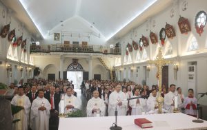 Đỉnh cao của ngày Đại hội là Thánh lễ vào lúc 10 giờ cùng ngày cho cha Tân TLH Giuse chủ tế. Đồng tế với ngài có cha Tổng đại diện Giáo phận, cha cựu TLH và quý cha đồng tế.