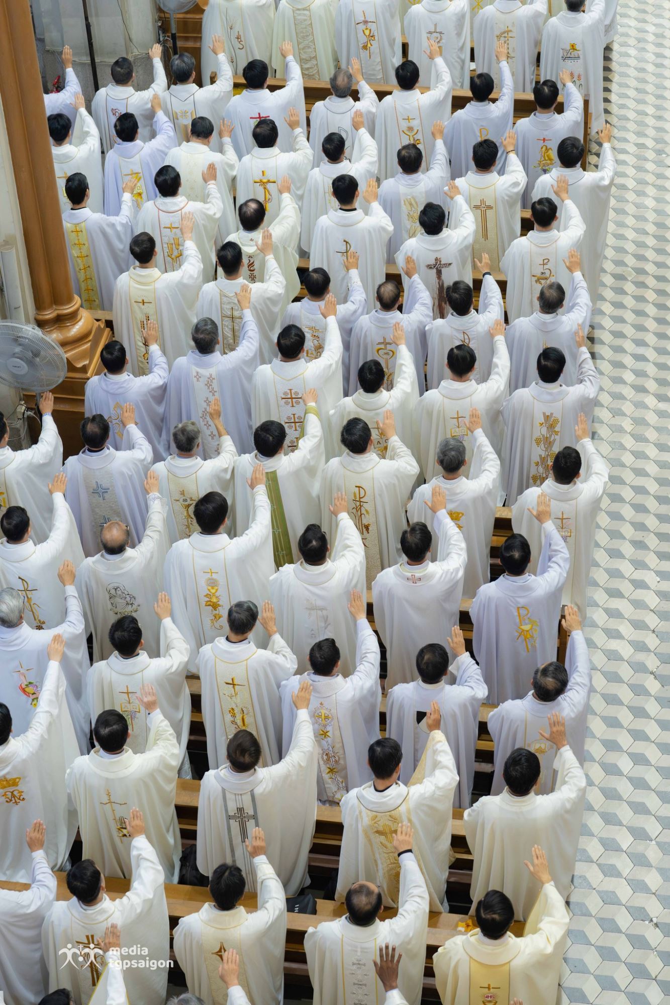 Đồng tế với ngài có linh mục Inhaxiô Hồ Văn Xuân – Tổng Đại diện Tổng Giáo phận Sài Gòn (TGP), cùng khoảng 400 linh mục trong TGP.