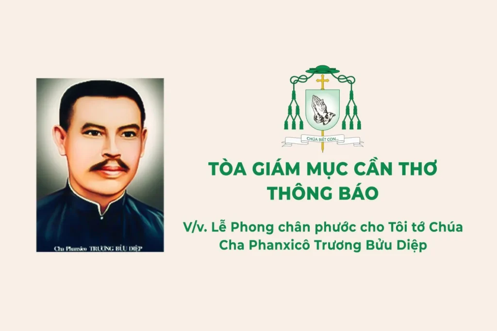 Xem chi tiết.....TÒA GIÁM MỤC CẦN THƠ Số 12 Nguyễn Trãi, P. Ninh Kiều, TP. Cần Thơ Tel: (0292) 3813655 Email: tgmcantho@gmail.com Số: 40-TB/2025 THÔNG BÁO V/v. Lễ Phong chân phước cho Tôi...
